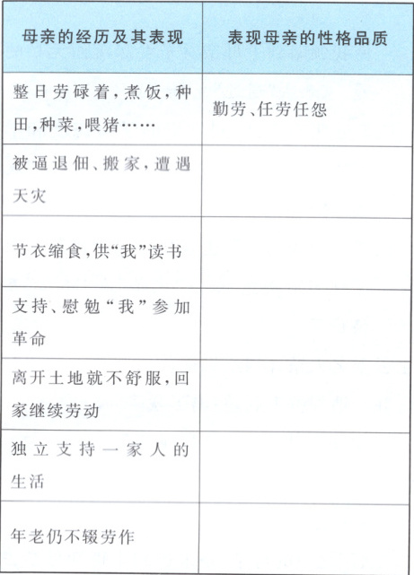 7. 阅读《回忆我的母亲》第 ⑭~⑯ 段,回答问题。