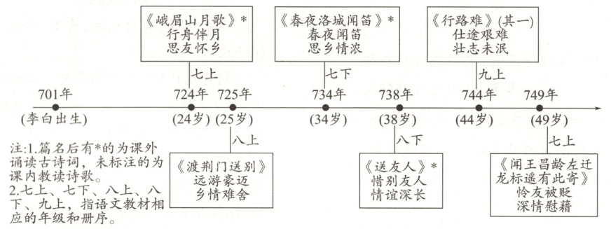 在初中语文教材中,李白有六首诗作入选。请根据下图内容和题目要求,完成下列各题。