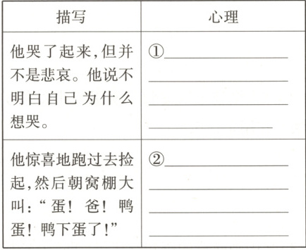 (4)他们在现实考验面前,战胜了内心的恐惧,变得自信、大胆,他们两个都由胆小而变得勇敢,都变成了有责任心的小男子汉。