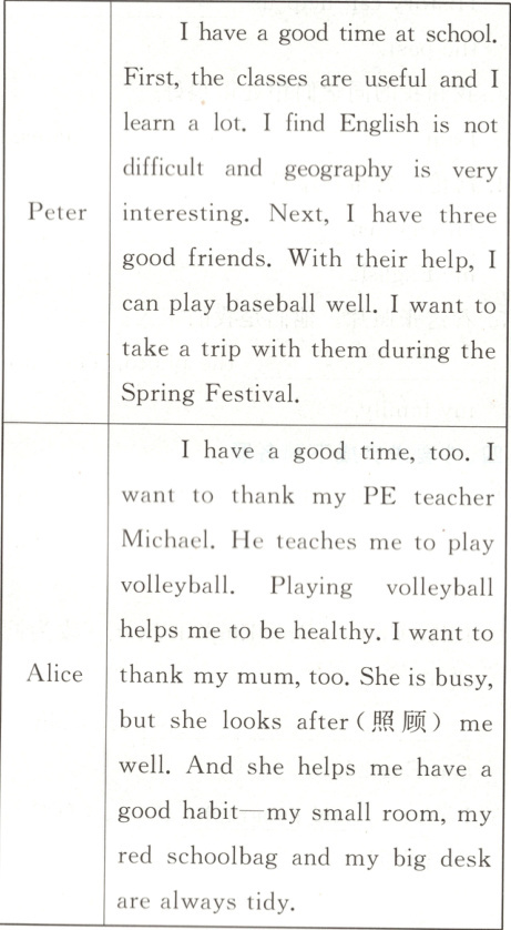 B. Peter and Alice have fun at school.