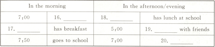 (四)听一段独白,根据所听到的内容完成下面的表格。独白读两遍。