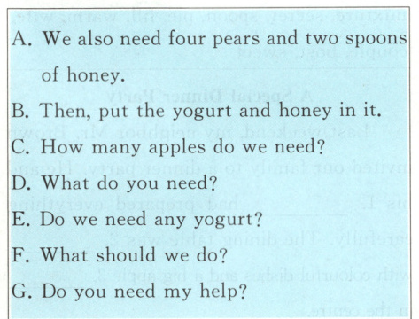 二、1. B 【解析】根据上下文,Linda 今年独自在外,没人给她包饺子。 2. A 【解析】表示让步关系,“尽管”她从未做过。 3. C 【解析】打电话“订”比萨饼。 4. B 【解析】将食材“混合”在一起。 5. D 【解析】调味料选择“盐”最符合饺子馅制作。 6. A 【解析】馅料“准备好”了。 7. D 【解析】固定搭配 be sure about 表示“对……有把握”。 8. D 【解析】“包”饺子皮,用 fill the wrappers。 9. C 【解析】煮饺子要放入热“水”中。 10. A 【解析】“最终”饺子变成了汤。