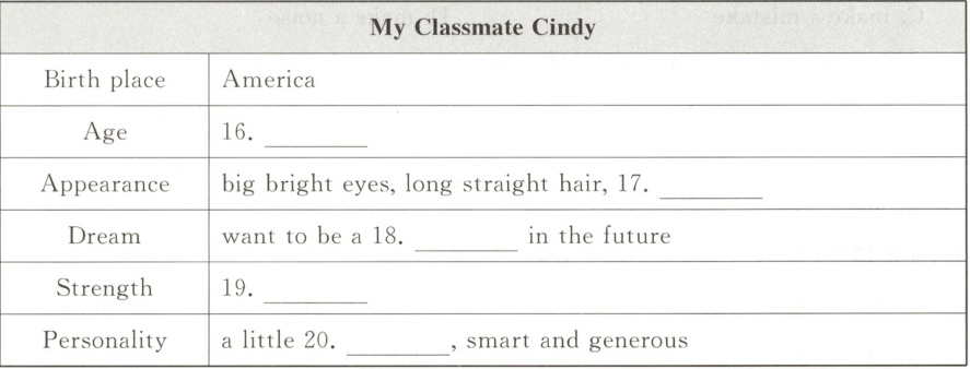 ( 四) 听一段独白,选择正确的选项填写在表格中。独白读两遍。