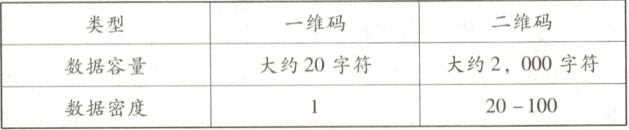 A. 二维码是在一维条码的基础上发展起来的,数据容量大概20字符,数据密度为1。