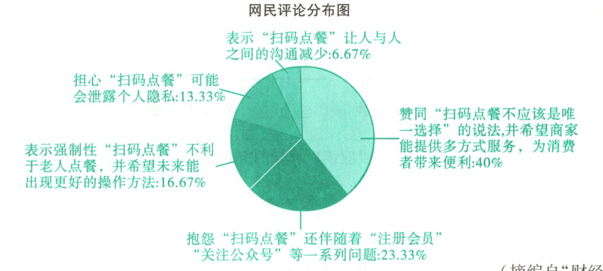 13. 根据材料二,归纳出扫码点餐可能会出现的问题。(3分)