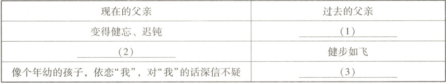 14. 阅读全文,找出现现在的父亲与过去父亲的区别,完成下面表格。(3分)