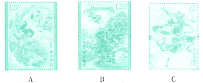请分别写出三枚西游记邮票的小说故事情节,并且按照小说故事情节的先后顺序排序。