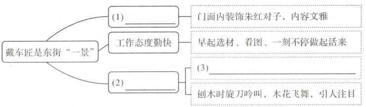 8. 小说开头写道:“戴车匠是东街一景”,请根据文章内容,完成下图的梳理。(3分)