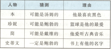 史蒂文在操场上捡到一个黑色的双肩包,包里有两本篮球杂志、几本书和三张古典音乐的唱片。包的主人是谁呢? 下面表格中的内容是史蒂文和其他三位同学的猜测及其理由。请你根据表格提示,以“Whose Backpack Is It?”为题写一篇英语短文。