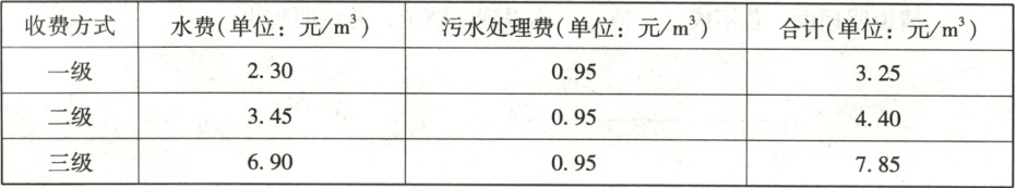 补充说明:居民用水还要收取污水处理费:按$0.95$元/$m^{3}$收取.