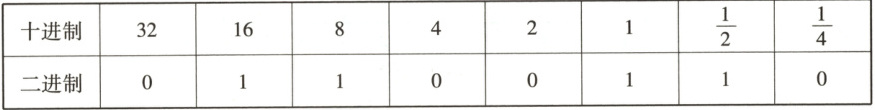 第一步制作表格:十进制的数从左到右左依次是$·s$,$32$,$16$,$8$,$4$,$2$,$1$,$\frac{1}{2}$,$\frac{1}{4}$,$·s$;从右到左,相邻两数是$2$倍关系。