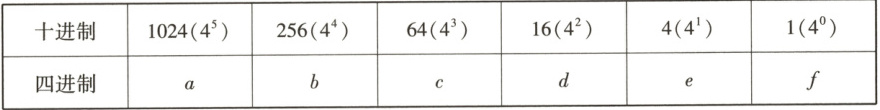 (3)利用给出的表格,将$(800)_{10}$转化为四进制,并求$a + b + c + d + e + f$的值。