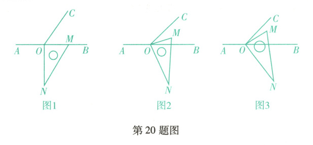 (3)将上述直角三角板按图3的位置摆放,使得$ OM $在$ \angle BOC $的内部,求$ \angle BON - \angle COM $的度数.