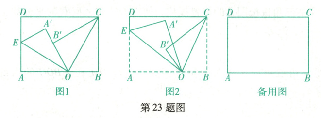 $ O $,$ E $分别是长方形纸片$ ABCD $边$ AB $,$ AD $上的点,沿$ OE $,$ OC $翻折,点$ A $落在点$ A' $处,点$ B $落在点$ B' $处.