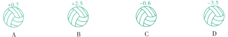 5. (抚顺新抚期末)检测下列 4 个足球, 其中超过标准质量的克数记为正数, 不足标准质量的克数记为负数. 从轻重的角度看, 最接近标准的是(