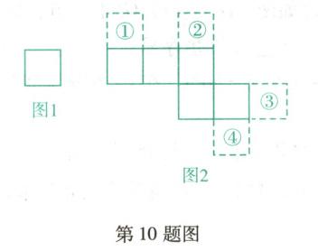 10. (抚顺县期末)图 1 和图 2 中所有的正方形都完全相同, 将图 1 的正方形放在图 2 中的①②③④某一位置, 则使所组成的图形