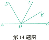 14. (大连甘井子期末)如图,点$A$,$O$,$B$在同一条直线上,射线$OD$和射线$OE$分别平分$\angle AOC$和$\angle BOC$,则$\angle COE$的余角是