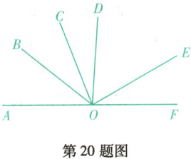 点$O$在直线$AF$上,射线$OB$,$OC$,$OD$,$OE$在直线$AF$的上方,且$\angle AOB = 40^{\circ}$,$\angle AOC = 70^{\circ}$.