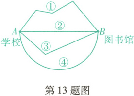 13. (大连甘井子期末)如图,从学校A到图书馆B最近的路线是②号路线,得出这个结论的根据是