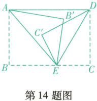 14. (大连庄河期末)如图,将长方形纸片ABCD按如图所示方式折叠,折叠后点B落到点B'的位置,点C落到点C'的位置,AE,DE为折痕,且∠B'EC' = 36°,则∠AEB + ∠DEC =