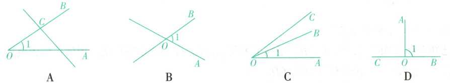 4. (葫芦岛建昌期末)下列四个图形中,能用$\angle 1,\angle AOB,\angle O$三种方法表示同一个角的图形是(
