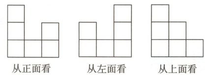 8. 一个几何体由一些棱长为 $ 1 \, cm $ 的小正方体搭成,如图所示,这是从正面、左面、上面看这个几何体的形状图.
