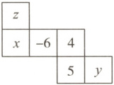 12. 如图所示,这是一个正方体的平面展开图,将其折叠成正方体后,各相对面的数字相等,则$x + y =$
