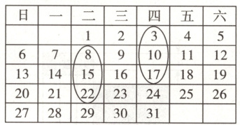 1. 在如图所示的日历中,任意圈出一竖列上相邻的 3 个数,这 3 个数之和不可能为(