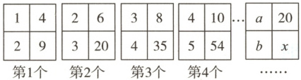 3. 表格中的 4 个数都是按照规律填写的,则表中$x$的值是(