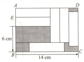 5. 在长方形$ABCD$中放入$6$个长、宽分别相同的小长方形,所标尺寸如图所示,求小长方形的宽$AE$.若设$AE=x\mathrm{c}\mathrm{m}$,则由题意可列方程为(