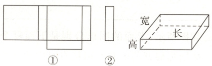 (2)现在,小明想将剪断的②重新粘贴到①上,而且经过折叠以后,仍然可以还原成一个长方体纸盒,你认为他应该将剪断的纸条粘贴到①中的什么位置?请帮助小明在①上补全。