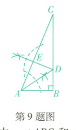 9. (营口期末)如图,在$Rt\triangle ABC$中,$∠ABC = 90^{\circ}$,根据尺规作图的痕迹判断,以下结论