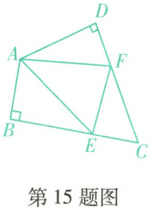 15. (抚顺新宾期末)如图,在四边形ABCD中,$∠C = 50^{\circ}$,$∠B = ∠D = 90^{\circ}$,E,F分别为BC,DC上的点.当$\triangle AEF$的周长最小时,$∠EAF$的度数为