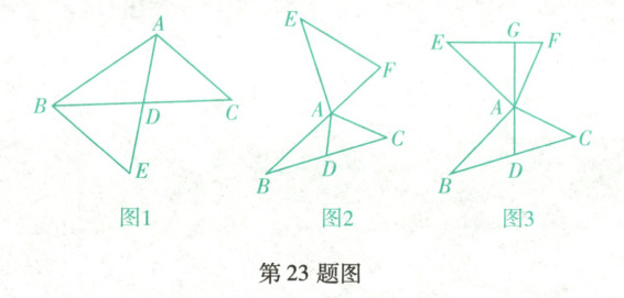 (4)在(3)的条件下,若$∠BAE = ∠CAF = 90^{\circ}$,延长DA交EF于点G,如图3,$AD = 2$,$AG = 3$,请