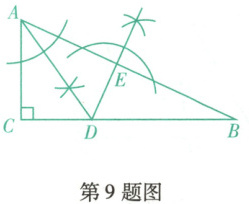 9. (抚顺东洲期末)如图,在$Rt\triangle ABC$中,$\angle ACB = 90^{\circ}$,根据尺规作图的痕迹,判断以下结论