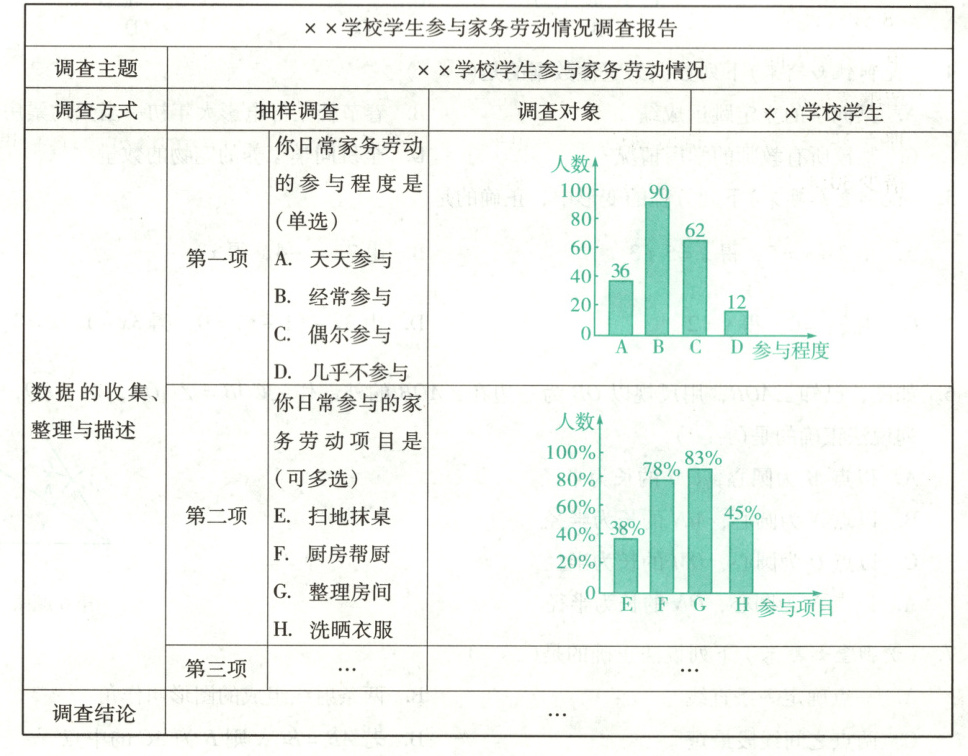 某校劳动实践小组为了解全校1800名学生参与家务劳动的情况,随机抽取部分学生进行问卷调查,形成了如下调查报告: