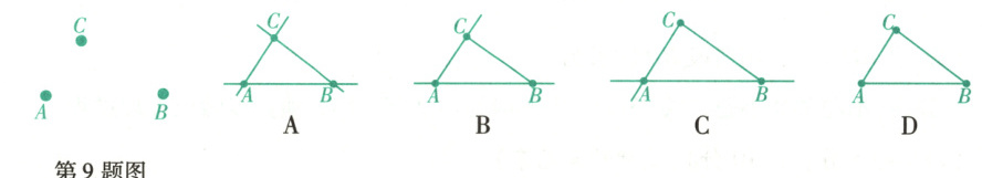 9. (沈阳和平期末)已知三点$A$,$B$,$C$,按下列要求画图:画直线$AB$,射线$AC$,连接$BC$.正确的是(