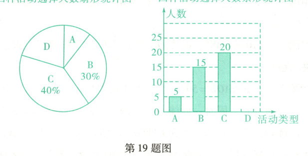 (3)喜欢$B$类型的人数约为$500 × 30\% = 150(人)$,喜欢$D$类型的人数约为$500 × \frac{10}{50} × 100\% = 100(人)$,补全的此次活动日程表如下: