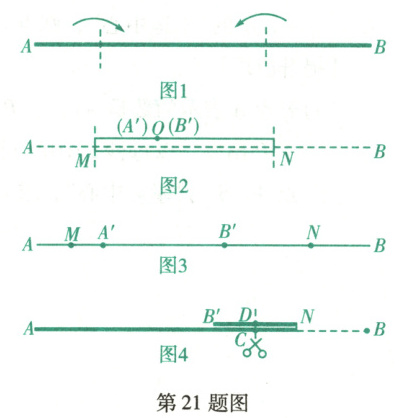 (1)若将绳子$AB$沿点$M$,$N$折叠,点$A$,$B$分别落在点$A'$,$B'$处.