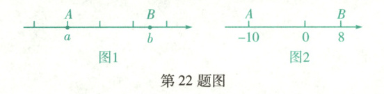 如图2,若$a=-10$,$b=8$,点$A$以每秒2个单位长度的速度沿数轴向右匀速运动,点$B$以每秒3个单位长度的速度沿数轴向左匀速运动,设运动时间为$t$秒$(t>0)$.