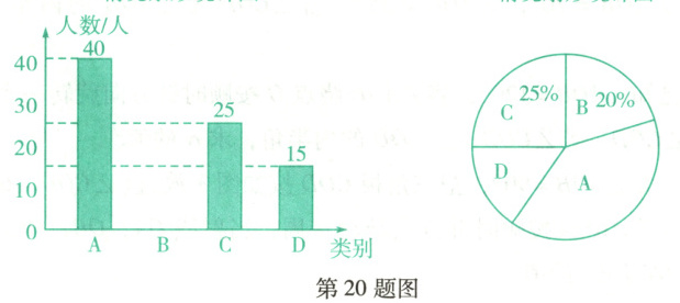 (2)B类别的人数为$100×20\% = 20$(人),补全的条形统计图如答图所示:
