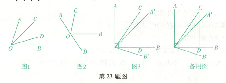 如图1, 若射线 $ OC $, $ OD $ 在 $ \angle AOB $ 的内部, 且 $ \angle COD = \frac{1}{2}\angle AOB $, 则 $ \angle COD $ 是 $ \angle AOB $ 的内半角.