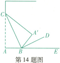 14. (阜新彰武期末)如图,将书面斜折过去,使顶点A落在点A'处,BC为折痕,BD为∠A'BE的平分线,则∠CBD的度数为