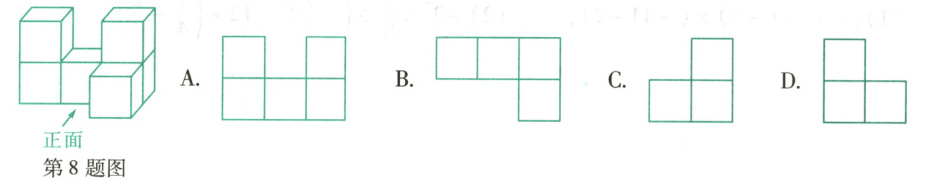 8. (丹东期末)如图是由完全相同的6个小立方体组成的几何体,则该几何体从上面看到的形状图为()