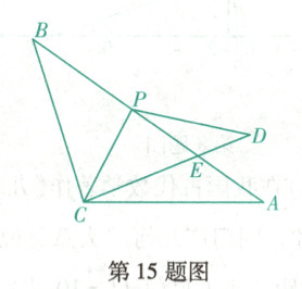 15. (沈阳皇姑期末)如图, 在 $\triangle A B C$ 中, $A C=B C=5 \mathrm{~cm}, A B=8 \mathrm{~cm}, P$ 是线段 $A B$ 上一动点, 将 $\triangle B C P$ 沿直线 $C P$ 折叠, 使点 $B$ 落在点 $D$ 处, $C D$ 交 $A P$ 于点 $E$. 当 $\triangle A C E$ 是直角三角形时, $B P$ 的长为