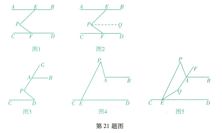 (2)如图 4, 已知 $A B / / C D$, 点 $E$ 在直线 $C D$ 上, 点 $P$ 在直线 $A B$ 的上方, 连接 $P A, P E$,则 $\angle P A B, \angle C E P, \angle A P E$ 之间有何数量关系? 请说明理由.