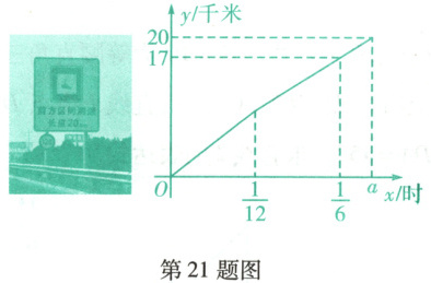 区间测速是指在某一路段前后设置两个监控点,根据车辆通过两个监控点的时间来计算车辆在该路段上的平均行驶速度.小春驾驶一辆小型汽车在高速公路上行驶,其间经过一段长度为20千米的区间测速路段,从该路段起点开始,他先匀速行驶$\frac{1}{12}$小时,再立即减速以另一速度匀速行驶(减速时间忽略不计),当他到达该路段终点时,测速装置测得该辆汽车在整个路段行驶的平均速度为100千米/时.汽车在区间测速路段行驶的路程y(单位:千米)与在此路段行驶的时间x(单位:时)之间的函数图象如图所示.