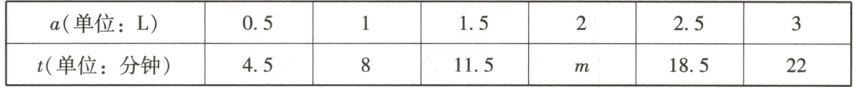 ∴$m = 11.5 + 3.5 = 15$;由表2可知,在煮沸模式下,加热时间每增加$3$分钟,水温就上升$30^{\circ}C$,