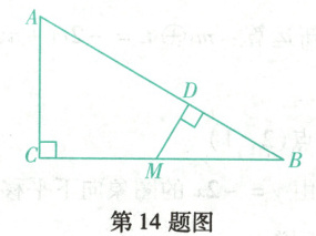 14. (沈阳法库期末) 在$\triangle ABC$中,$\angle C=90^{\circ}$,$M$是$BC$的中点,$MD\perp AB$于点$D$.若$AC=2$ cm,$AD=\frac{5}{2}$ cm,则$BD$的长为