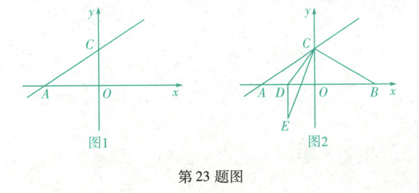 (1)知$AO = 3\sqrt{3}$,OC = 3,则$AC = 6$,则∠CAO = 30° = ∠ABC,分三种情况:①当DE⊥AB时,如答图1,设CE与x轴交于点H,则∠E = ∠CAO = 30°,则∠CHO = ∠DHE = 90° - 30° = 60°。在Rt△CHO中,∠CHO = 60°,CO = 3,设OH = a,则CH = 2a,OC = $\sqrt{3}a = 3$,解得a = $\sqrt{3} = OH$。设DH = x,则$HE = 2x$,DE = $\sqrt{3}x$ = AD,则$AO = 3\sqrt{3} = AD + DH + OH = (\sqrt{3} + 1)x + \sqrt{3}$,解得x = $3 - \sqrt{3}$,则OD = x + OH = 3,故点D的坐标为( - 3,0);②当DE⊥BC时,如答图2,则∠EDB = 90° - 30° = 60°,而∠CDE = ∠CDO = $\frac{1}{2}(180° - ∠EDB) = 60°$,即点D和①中的点H关于y轴对称,故点D的坐标为(3,0);③当DE⊥AC时,如答图3,延长ED交AC于点H,